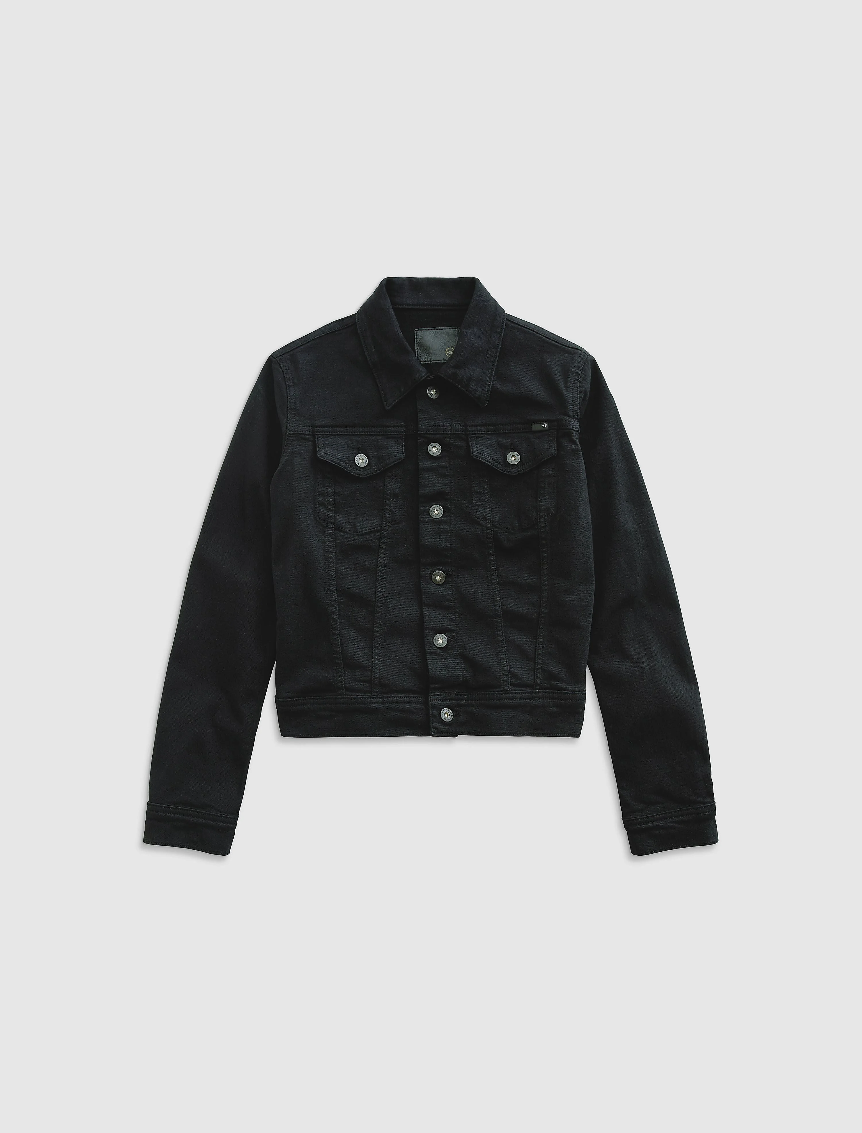 Slim Trucker The Robyn is a women’s long-sleeve jacket crafted from 10.25 oz. Cloud Soft Stretch Denim. Designed in a comfort stretch fit, this style comes in a rich Super Black wash for a sleek, versatile look. DETAILS & FIT Model is wearing size S. - Body Length: 18" - Chest Width: 35" - Sleeve Length: 24" FABRIC & CARE Cloud Soft Stretch Denim, 10.25 oz. 93% Cotton, 5% Polyester, 2% Elastane