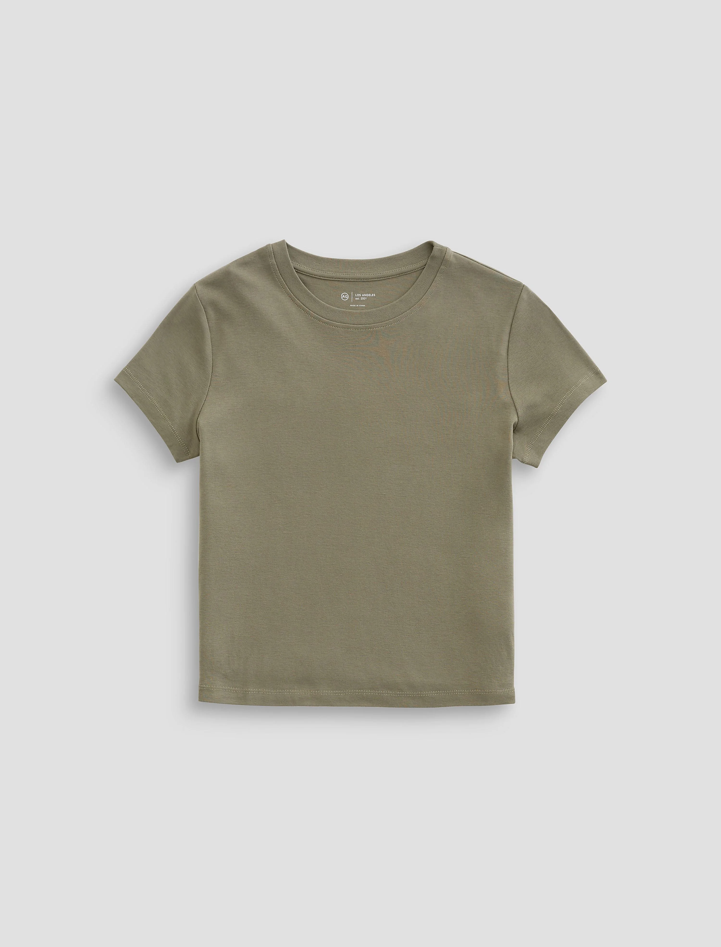 90's Vintage Crop Tee The Sadie Crew is a throwback essential T-shirt knitted from our cotton blend Everyday Baby Rib knit fabric. Inspired by vintage '90s crop tees, it features a slim, slightly shrunken fit that flatters and layers with ease. Designed in a muted green color, Spruce Green, this tee is a go-to for effortless, everyday style. DETAILS & FIT Model is wearing size S. - Body Length: 20 1/4" - Sleeve Length: 5 1/4" - Chest Width: 33 3/4" FABRIC & CARE Everyday Baby Rib, 60% Cotton, 40% Modal