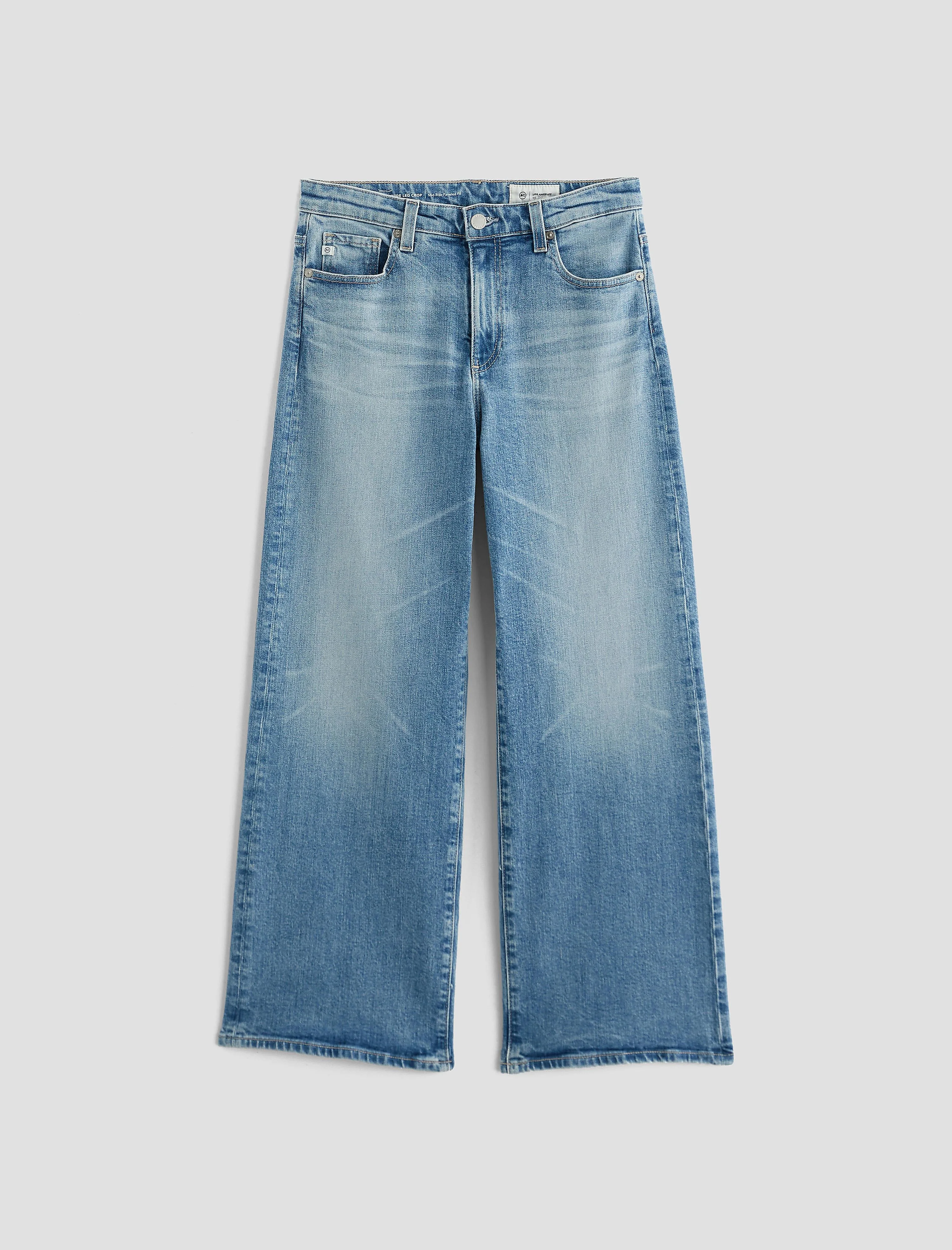 Mid-Rise Fit The Saige Wide-Leg crop is a high-rise jean with a wide-leg silhouette and clean hems. This five-pocket style offers a relaxed yet structured look. Crafted from 11.75 oz. Vintage Comfort Stretch Denim, the pair comes in a Helios light wash. DETAILS & FIT Katy is 5'9 wearing size 26. Linh is 5'3 wearing size 24. The measurements below are based on a size 26. - Front Rise: 10 1/4" - Knee Opening: 20 1/4" - Bottom Opening: 21" - Inseam: 27" FABRIC & CARE Vintage Comfort Stretch Denim, 11.75 oz. 98% Cotton, 2% Elastane