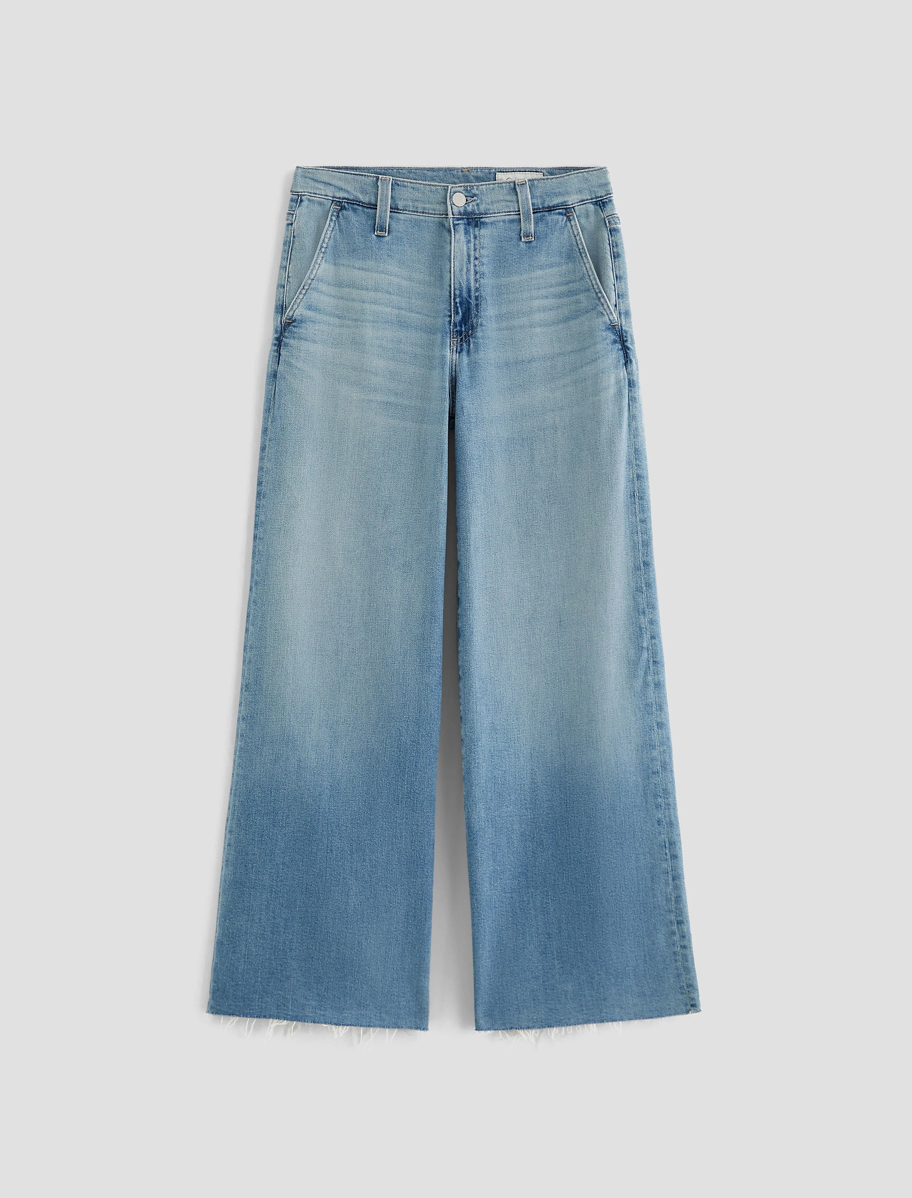 Low Slung Palazzo The Stella Ankle is a slightly cropped version of our best-selling low-slung palazzo pants. The style has slant front pockets, utility-style patch pockets at the back, and super-wide legs with raw hems. It's got a faded blue wash and a soft, lightweight feel in Daytripper Stretch Denim from Japan. DETAILS & FIT Model is wearing size 26. - Front Rise: 10 1/2" - Knee Opening: 23 1/4" - Bottom Opening: 25" - Inseam: 28 1/2" FABRIC & CARE Daytripper Stretch Denim, 10 Oz. 72% Cotton, 26% Lyocell, 2% Polyurethane