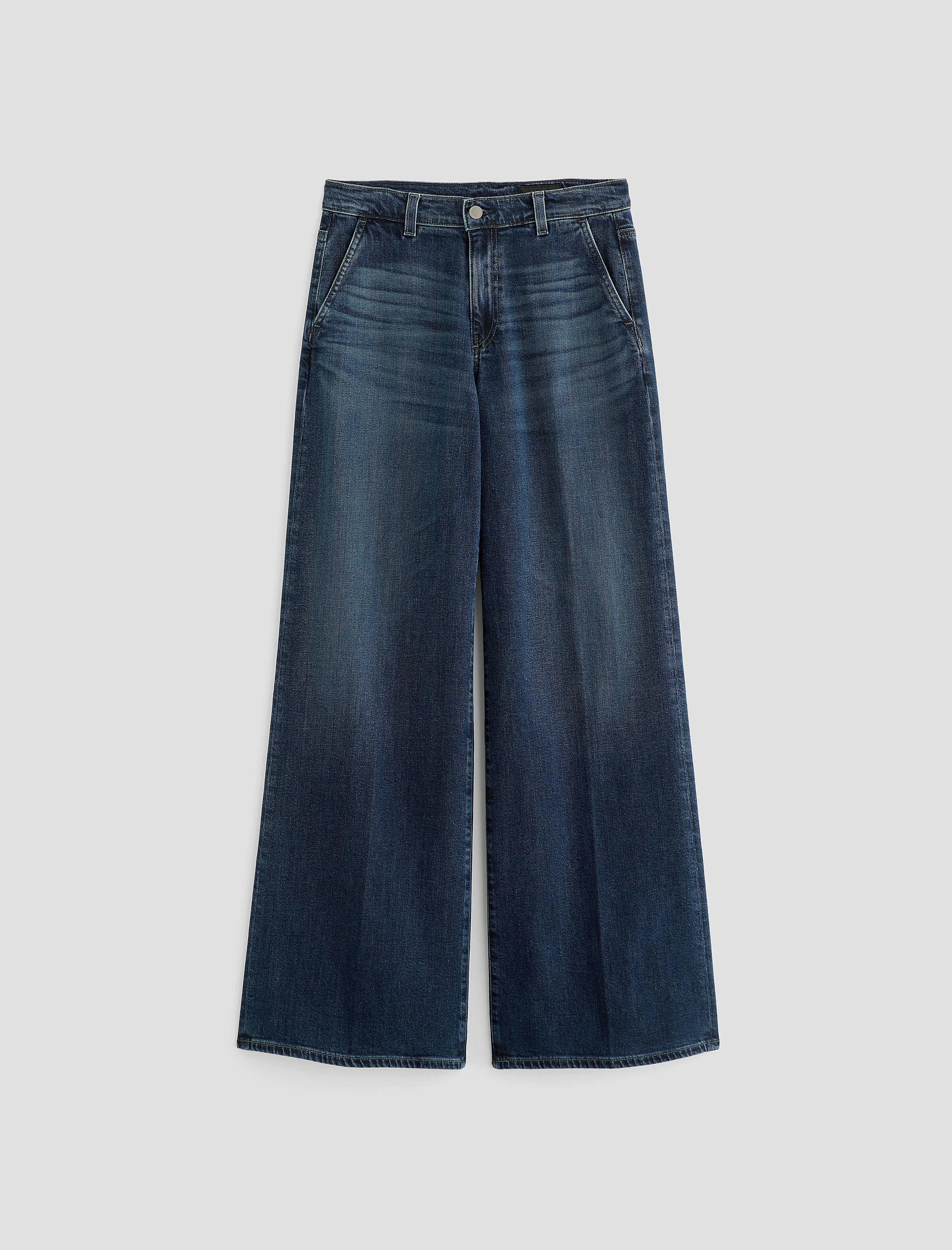 Low Slung Palazzo The Stella is a low-slung palazzo pant with a clean, pressed finish that gives this relaxed style a refined edge. The wide-leg silhouette and mid-rise fit create an elongating effect, while offering all-day comfort and ease. Made from Japanese comfort-stretch denim, it blends softness with structure — moving effortlessly from casual to elevated. Crafted from premium denim sourced from Japan’s Kaihara Mill. DETAILS & FIT Model is wearing size 26. - Front Rise: 10 1/2" - Knee Opening: 23 1/4" - Bottom Opening: 25" - Inseam: 32 1/2" FABRIC & CARE Daytripper Stretch Denim, 10 Oz. 72% Cotton, 26% Lyocell, 2% Polyurethane