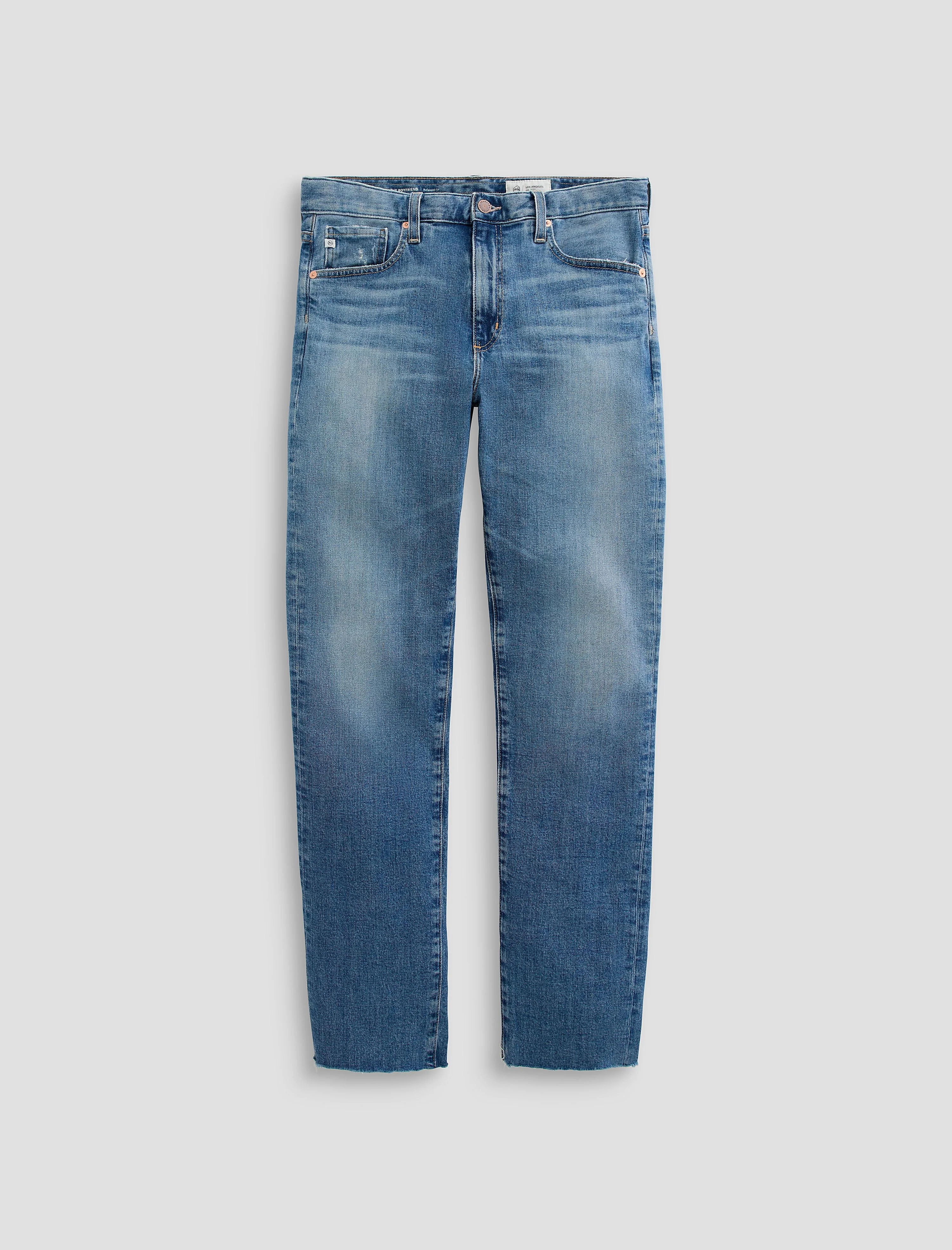 Relaxed Fit The Boyfriend jean is our beloved relaxed silhouette crafted in Comfort Stretch Journey Denim from the renowned Candiani Mill in Italy. This effortlessly cool style, known for its slouchy mid-rise and gently tapered leg, is versatile as it is comfortable, making it a must-have denim staple. Designed in our medium blue wash, American West, and finished with highs and lows, whiskering, fading, light distressing on the coin pocket, worn-down trim, and raw-cut hem for a vintage touch. DETAILS & FIT Model is wearing size 26. - Front Rise: 10 1/2" - Knee Opening: 17" - Bottom Opening: 14 1/2" - Inseam: 31" FABRIC & CARE Journey Denim, 11 Oz. 98% Cotton, 2% Elastane