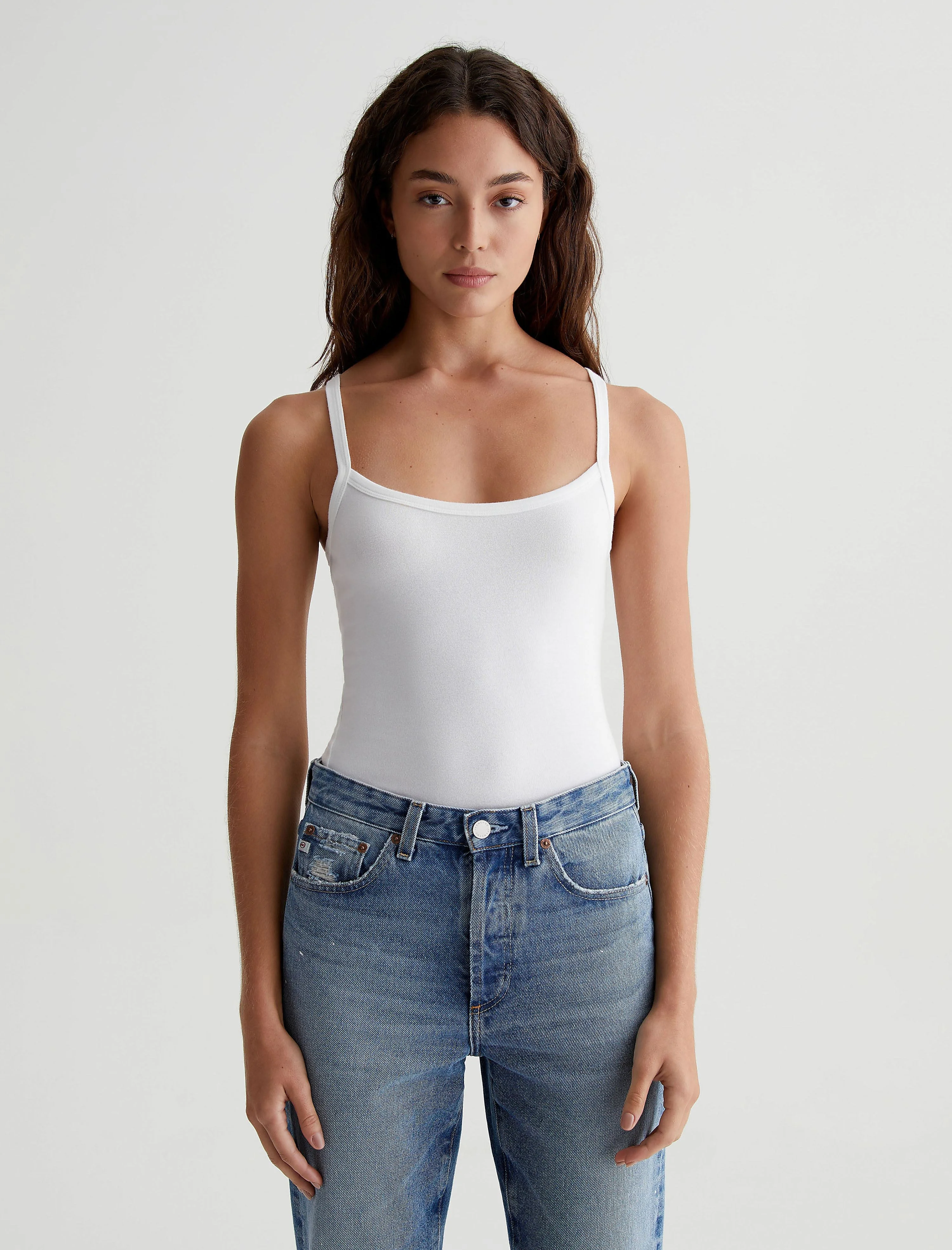 90'S Vintage Fitted The Wittney Tank is a simple, strappy knit top inspired by vintage '90s style. Made from a cotton-blend baby rib in white, it fits close to the body and features a racer-esque back. This women's knit tank is perfect on its own or layered, pairing well with your favorite jeans, shorts, skirts, pretty much anything. DETAILS & FIT Model is wearing size S. - Body Length: 21 1/2" - Chest Width: 26 1/2" - Bottom Opening: 14 1/4" FABRIC & CARE Luxe Baby Rib, 95.4% Cotton, 4.6% Spandex/Elastane