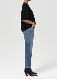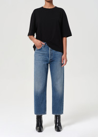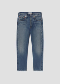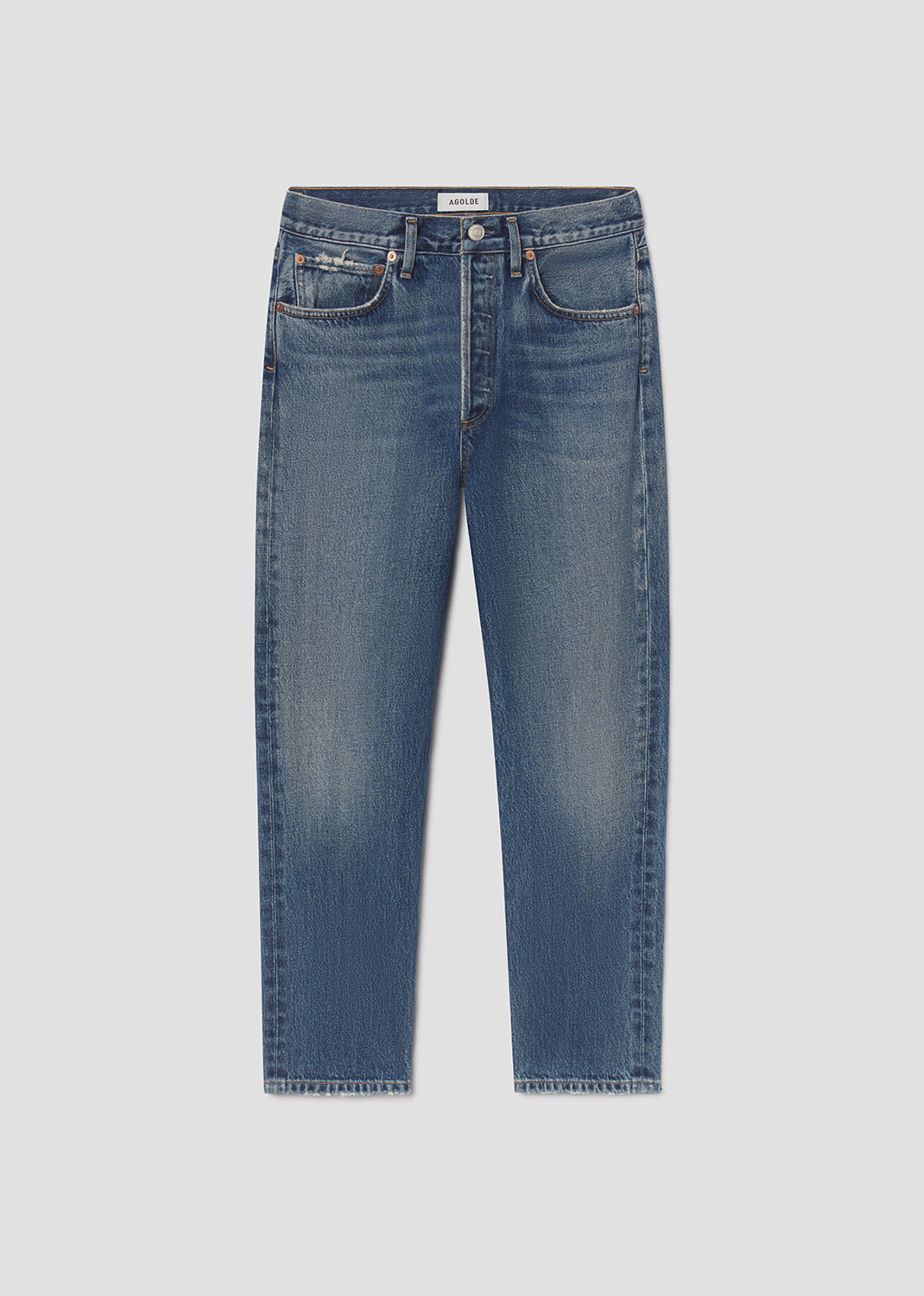 Our best-selling 90’s Jean, now with a cropped inseam. This mid-rise fit sits relaxed at the waist and flows into a loose straight leg. Crafted from rigid, non-stretch 100% regenerative cotton denim, it softens with each wear. The medium vintage indigo wash features subtle fading and whiskering for a timeless look. Pair with a tailored blazer and pointed-toe boots for a polished yet laid-back vibe, or style with a tucked-in tee and sneakers for an effortlessly cool weekend look. For the full-length version, shop the 90's Jeans. This fit is intended to be relaxed. Size down for a higher, closer fit. Looks Like: Medium vintage indigo denim pant Feels Like: Rigid, non stretch cotton denim with a soft hand for all day wearabilityl MORE DETAILS Closure: Button Fly Rise: 12 1/2" Inseam: 26" Leg Opening: 15 3/4" Model is 5'10" and is wearing a Size 27 Fabric: 67% Regenerative Cotton 22% Recycled Lyocell 11% Post Recycled Cotton Care Instructions: Machine wash cold inside out with like colors. Do not bleach. Tumble dry low. Made in Turkey with imported materials A173-1810-BNTY