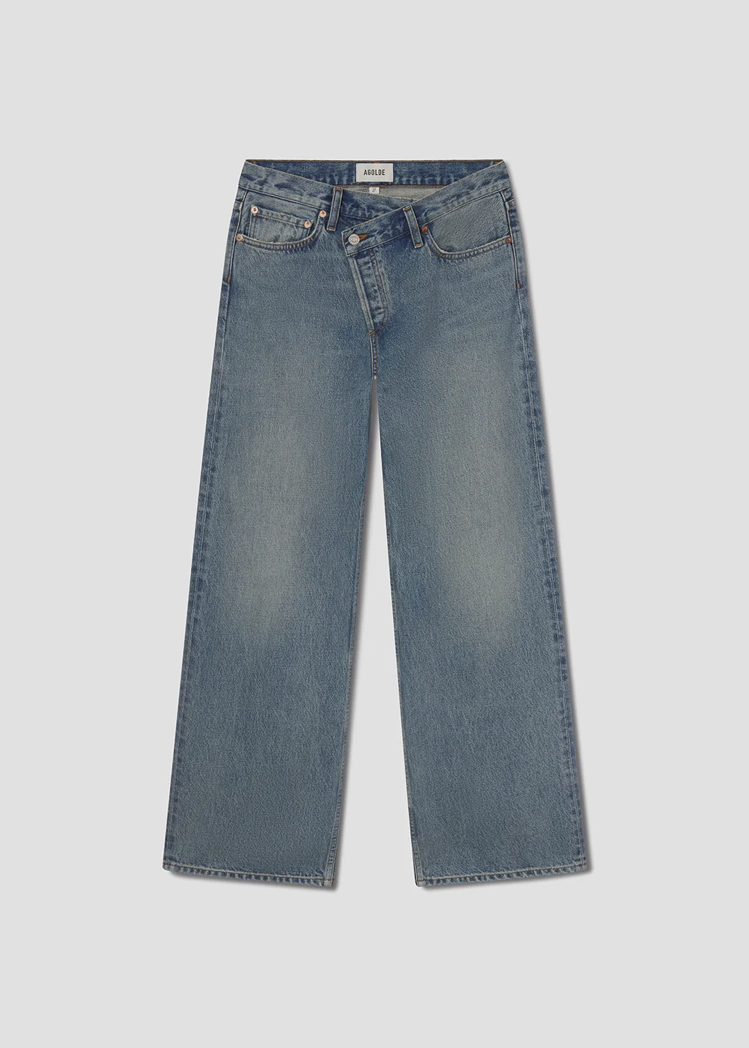 The Arc Criss Cross Jean in Conclusion redefines a signature silhouette with a modern edge. Crafted from rigid regenerative and recycled cotton, this medium indigo denim features a criss cross waistband, relaxed top block, and curved leg for a subtly sculpted fit. A 32” inseam elongates the look, blending structure with effortless wearability. This fit is true to size. Looks Like: Medium tinted indigo denim pant with criss cross closure Feels Like: Rigid, non stretch cotton denim with a soft hand for all day wearability MORE DETAILS Closure: Button Fly Rise: 9 1/2" Inseam: 32" Leg Opening: 19 1/2" Model is 5'10" and is wearing a Size 27 Fabric: 67% Regenerative Cotton, 22% Lyocell, 11% Post Consumer Recycled Cotton Care Instructions: Machine wash cold inside out with like colors. Do not bleach. Tumble dry low. Made in Turkey with imported materials A317-1885-CNCL
