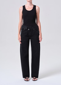 The Arc Criss Cross Jean in Phase updates a signature silhouette in washed black weightless denim. Crafted from regenerative cotton, this non-stretch, soft-to-the-touch fabric offers a worn-in feel with lasting structure. A criss cross waistband and curved leg define its directional shape, creating an elongated, effortlessly modern fit. This fit is true to size. Looks Like: Dark lightly worn in black denim pant with criss cross closure Feels Like: Non stretch, weightless denim washed down for a super soft feel MORE DETAILS Closure: Button Fly Rise: 9 1/2" Inseam: 32" Leg Opening: 19 1/2" Model is 5'10" and is wearing a Size 27 Fabric: 100% Regenerative Cotton Care Instructions: Machine wash cold inside out with like colors. Do not bleach. Tumble dry low. Made in Turkey with imported materials A317-1817-PHA