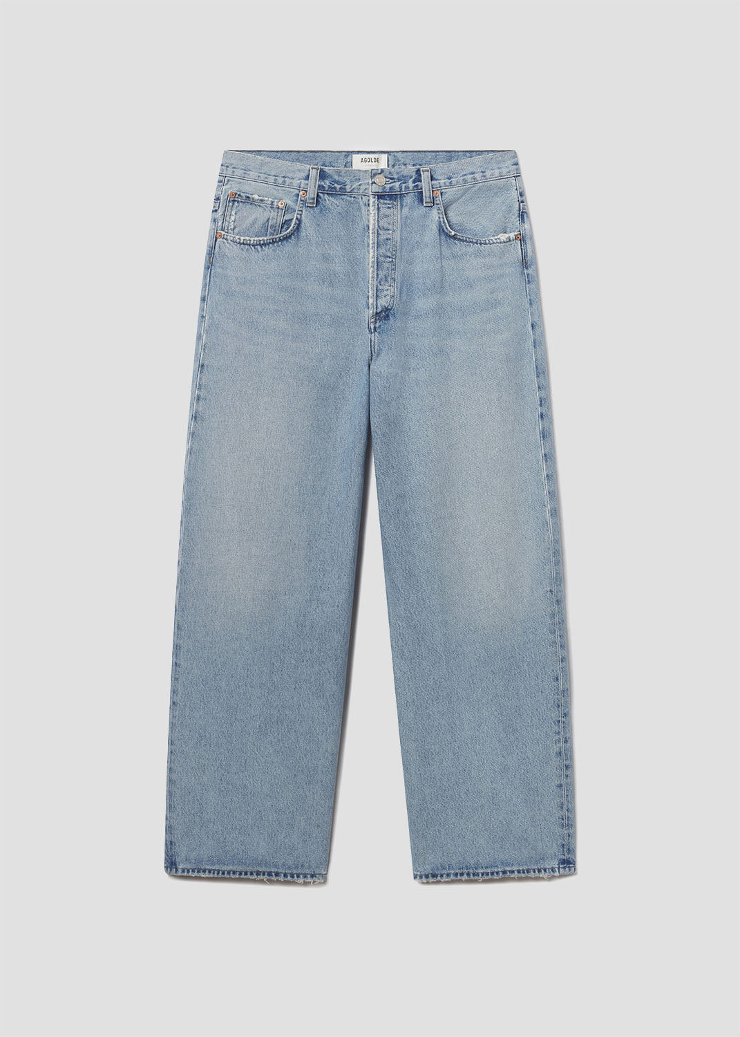 This baggy fit features an ultra-relaxed rise and a wide, straight leg. This fit is true to size. Looks Like: Light vintage marbled indigo Feels Like: Zero-stretch, regenerative cotton with a gentle texture and ample drape for all-day ease MORE DETAILS Closure: Button Fly Rise: 14 1/4" Inseam: 30" Leg Opening: 23" Model is 6'2" and is wearing a Size 32 Fabric: 100% Regenerative Cotton Care Instructions: Machine wash cold inside out with like colors. Do not bleach. Tumble dry low. Made in USA with imported materials A659-1206-FORCE