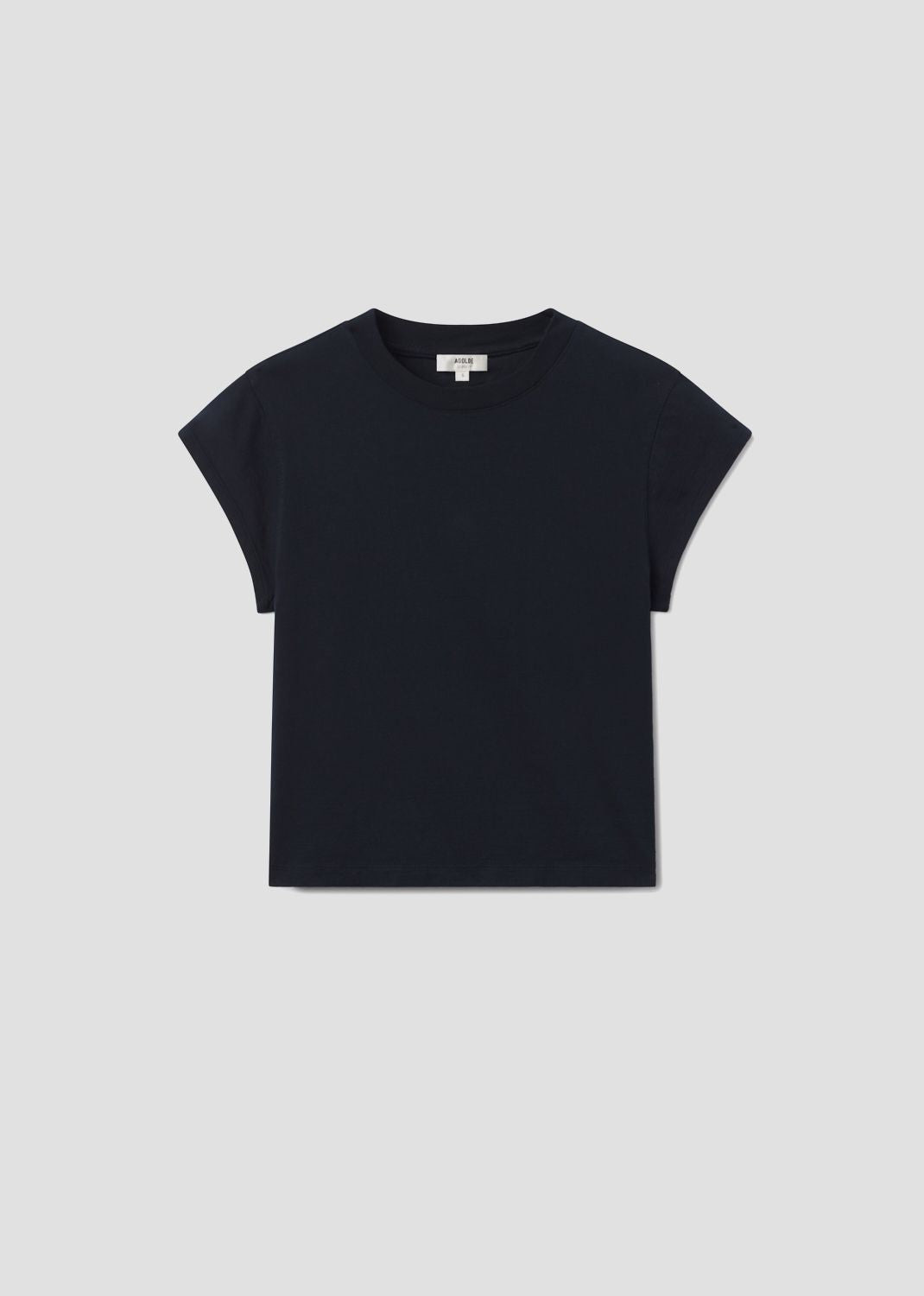 When you need more than just a basic tee—meet the Bryce. Crafted from 100% breathable, ultra-soft cotton, it’s perfect for wearing solo or layering. The angled sleeves add a modern touch, creating a fresh and flattering silhouette that effortlessly elevates any look. This fit is true to size. Looks Like: Dark navy crewneck tee with cap sleeves Feels Like: Lightweight jersey with an easy drape for all day wearability MORE DETAILS Body Length: 21 1/4" Shoulder to Shoulder: 15 1/2" Sleeve Length: 3 1/2" Chest: 38" Sweep: 39" Model is 5'10" and wearing a size Small Fabric: 100% Cotton Care Instructions: Machine wash cold. Made in USA with imported materials A7207-1521_SOM