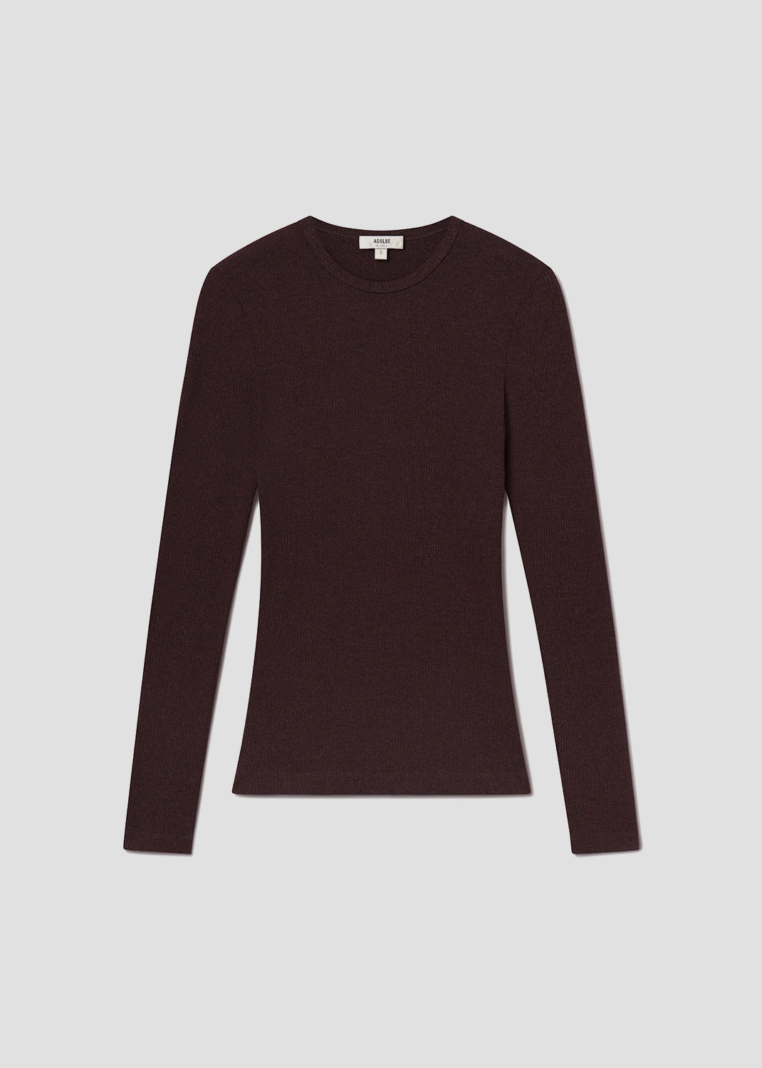 The Delphi Slim Tee is a fitted long sleeve crewneck with a flattering ribbed texture. Crafted from midweight fabric, it offers a sleek, streamlined fit ideal for layering or wearing solo. This fit is true to size. Looks Like: Dark brown and burgundy fitted long sleeve crewneck tee Feels Like: Midweight intermingle chunky rib that hugs the body MORE DETAILS Body Length: 25" Chest: 27" Shoulder to Shoulder: 13" Sleeve Length: 25" Model is 5'10" and wearing a size Small Fabric: 50% Polyester, 32% Cotton, 18% Rayon Care Instructions: Machine wash cold. Made in USA with imported materials A7230-1352_RIS