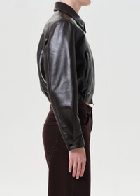 ESSIE RECYCLED LEATHER CROPPED JACKET IN CHOCOLATE