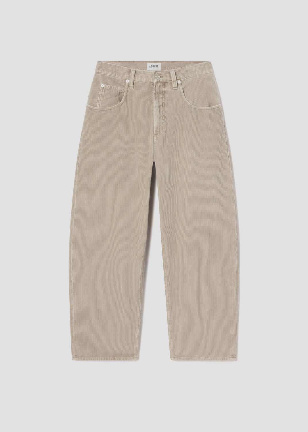 A low-slung style with ultra-exaggerated pockets and an easy, tapered fit. Made from super-soft, heavyweight corduroy in a medium grey with silver tones. This fit is true to size. Looks Like: Medium grey corduroy with silver tones Feels Like: Super soft textured corduroy MORE DETAILS Closure: Zipper Fly Rise: 13" Inseam: 32 1/4" Leg Opening: 19" Model is 6'2" and is wearing a Size 32 Fabric: 100% Cotton Care Instructions: Machine wash cold inside out with like colors. Do not bleach. Tumble dry low. Made in USA with imported materials A695-1840-PICE