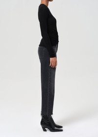 The Harper Crop is the kind of jean you'll reach for on repeat. Cut from comfort-stretch denim in a washed-out black, this mid-rise style features a relaxed straight leg and softly worn-in finish. Cropped at the ankle for easy styling—just add a tee and sandals, and you're set. This fit is true to size. Looks Like: Washed out medium black denim pant Feels Like: Comfort stretch, archive denim with a super soft hand for all day wearability MORE DETAILS Closure: Zipper Fly Rise: 11 1/4" Inseam: 27" Leg Opening: 19 1/2" Model is 5'10" and is wearing a Size 27 Fabric: 99% Regenerative Cotton, 1% Elastane Care Instructions: Machine wash cold inside out with like colors. Do not bleach. Tumble dry low. Made in Turkey with imported materials A9190-1825-RDUS
