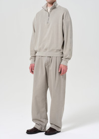 A medium to light washed-out grey quarter-zip sweatshirt in heavyweight brushed fleece. True to size, perfect for layering or wearing on its own. Made from 100% Cotton. This fit is true to size. Looks Like: Medium to light washed out grey quarter zip sweatshirt Feels Like: Heavyweight brushed fleece with a warm, plush hand MORE DETAILS Body Length: 26 1/2" Shoulder to Shoulder: 26 1/2" Sleeve Length: 23" Model is 6'2" and wearing a size Medium Fabric: 100% Cotton Care Instructions: Machine wash cold. Made in USA with imported materials A1027-1784-ICK