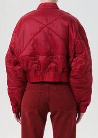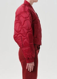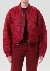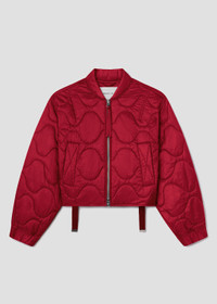 The ultimate layering piece from the West Coast to East London. Iona Quilted Jacket will layer on to your everyday rotation to create a versatile statement silhouette. Crafted from nylon ripstop and lightly quilted with recycled fibers, it’s cut to a bomber-inspired silhouette with voluminous sleeves. Note the internal signature harness, so you can wear off-shoulder or just carry with you if the sun comes back out. This fit is true to size. Looks Like: Bright medium red cropped quilted jacket with zipper front closure Feels Like: Ultra-smooth, silk-like nylon MORE DETAILS Body Length: 21" Shoulder to Shoulder: 20 1/2" Chest: 23 1/2" Sweep: 19 3/4" Sleeve Length: 23 1/2" Model is 5'10" and wearing a size Small Fabric: 100% Nylon Care Instructions: Machine wash cold inside out with like colors. Do not bleach. Tumble dry low. Made in Vietnam with imported materials A5031-TOMT