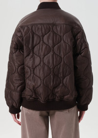 The Isla Quilted Jacket is cut in a relaxed silhouette with a zip-front closure and subtle volume through the sleeves. Crafted from ultra-smooth, silk-like nylon in a rich dark chocolate brown, it brings a polished touch to a casual, cold-weather staple. Layer over denim or soft knits for effortless contrast. This fit is true to size. Looks Like: Relaxed dark chocolate brown quilted jacket with zipper front closure Feels Like: Ultra-smooth, silk-like nylon MORE DETAILS Model is 5'10" and wearing a size Small Fabric: 100% Shearling Care Instructions: Machine wash cold inside out with like colors. Do not bleach. Tumble dry low. Made in Vietnam with imported materials A5031-COCA