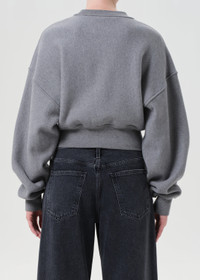 A fresh take on a classic crew, the Kit Sweatshirt features a cropped length with subtle volume and an elasticated hem for a modern shape. Crafted from breathable cotton fleece with a soft drape, this medium grey layer is designed to wear effortlessly on repeat. Pair with structured denim for a casual-cool balance. This fit is true to size. Looks Like: Medium grey cropped crewneck sweatshirt with elastic at hem Feels Like: Breathable soft cotton fleece with just the right amount of drape MORE DETAILS Model is 5'10" and wearing a size Small Fabric: 100% Cotton Care Instructions: Machine wash cold. Made in Portugal with imported materials A7348-GRYHR