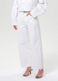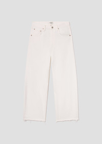 The Low Curve Fray offers a fresh, spring-ready update to the classic Low Curve Jean. Featuring a cropped inseam and a frayed hem, this style exudes an effortlessly chic vibe. Crafted from regenerative cotton in clean white denim, the frayed hem adds a relaxed touch, perfect for warm-weather styling. Pair with a simple tank and sneakers for a laid-back look or dress it up with a tucked-in blouse and heels for a more polished ensemble. This fit is true to size. Also available in Low Curve Jean Looks Like: Clean white denim with frayed hem Feels Like: Rigid, non stretch denim made with an authentic, soft hand feel MORE DETAILS Closure: Zipper Fly Rise: 11 3/4" Inseam: 27 1/2" Leg Opening: 21" Model is 5'10" and is wearing a Size 27 Fabric: 100% Regenerative Cotton Care Instructions: Machine wash cold inside out with like colors. Do not bleach. Tumble dry low. Made in Turkey with imported materials A238-1183-MSAK