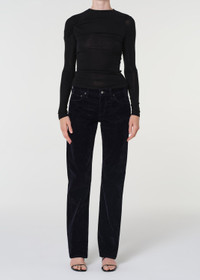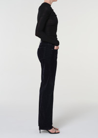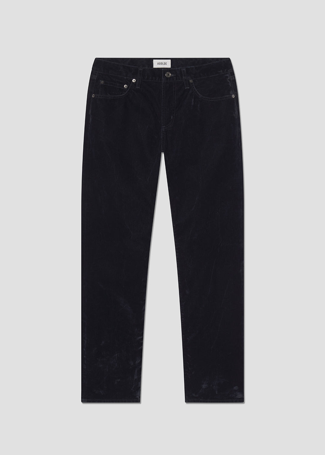 The Low Rise Slim offers a sleek, elongated silhouette with a modern low rise. Crafted in plush, multi-dimensional navy velvet, the texture feels both luxurious and soft against the skin. A refined yet directional piece—perfect with an easy tee or a tailored jacket. This fit is true to size. Looks Like: Luxurious multi-dimensional dark deep navy velvet pant Feels Like: Plush yet textured super soft velvet MORE DETAILS Closure: Zipper Fly Rise: 9 1/4" Inseam: 32" Leg Opening: 16 1/2" Model is 5'10" and is wearing a Size 27 Fabric: 84% Cotton, 16% Viscose Care Instructions: Machine wash cold inside out with like colors. Do not bleach. Tumble dry low. Made in Turkey with imported materials A289-1884-BLUCR
