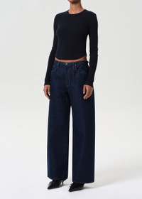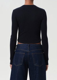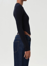 The Neema Tee features a long sleeve design with a curved hem, crafted from ultra-soft, ribbed cotton. Made from a regenerative cotton blend, it offers a supportive fit that’s perfect for layering or wearing on its own. Looks Like: Dark navy long sleeve tee with curved hem Feels Like: Ultra soft and supportive ribbed cotton MORE DETAILS Body Length: 19" Shoulder to Shoulder: 11 1/2" Sleeve Length: 25 1/2" Sweep: 24" Model is 5'10" and wearing a size Small Fabric: 49% Regenerative Cotton, 49% Lyocell, 2% Spandex Care Instructions: Machine wash cold inside out with like colors. Do not bleach. Tumble dry low. Made in USA with imported materials A7383-1260-MRGE