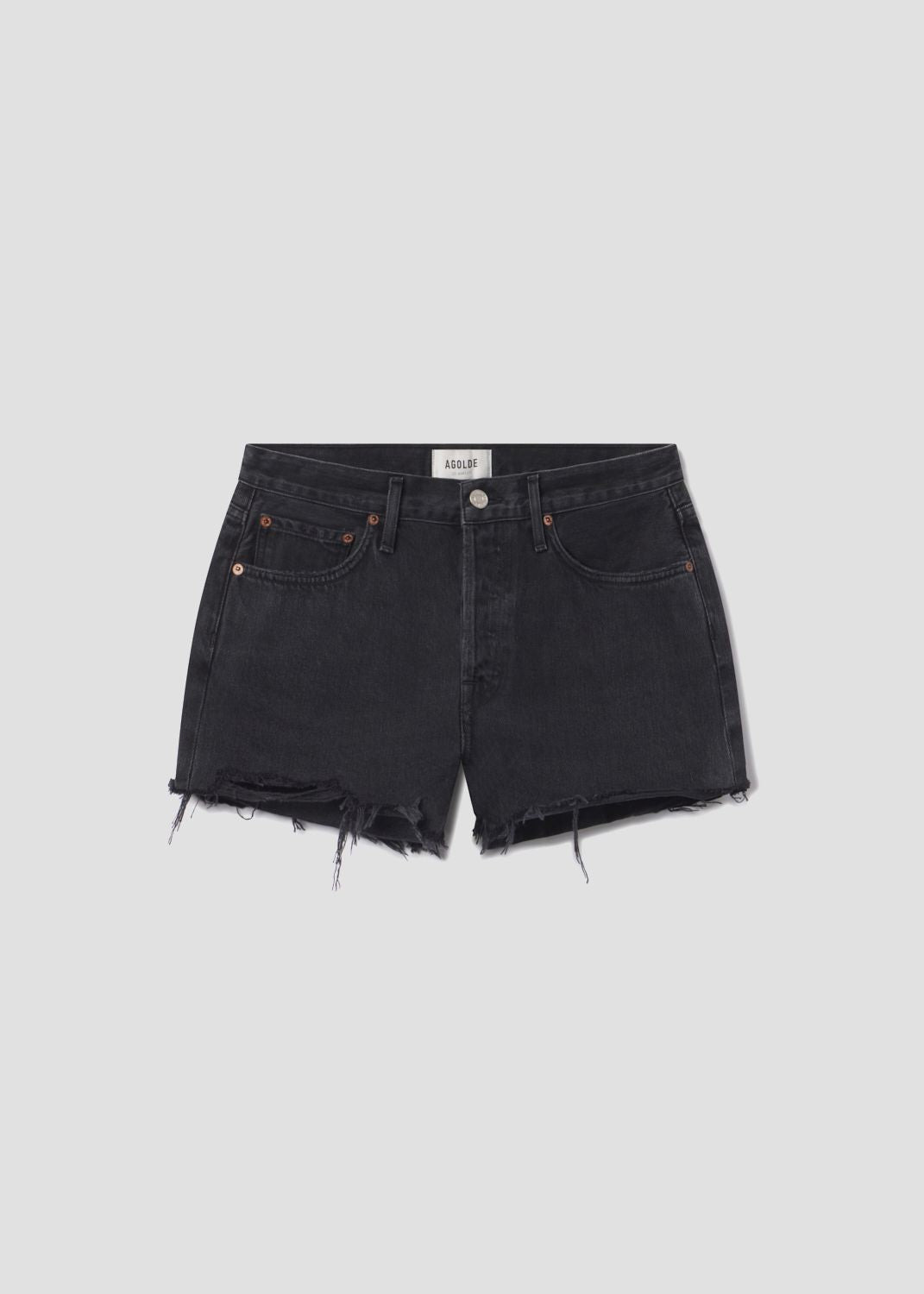 The fan-favorite Parker Short features a flattering high-rise with a relaxed silhouette through the hips, tailored to feel as though they were made just for you. Crafted in worn-in dark black denim with regenerative cotton, these non-stretch shorts offer a comfortable fit and a timeless, lived-in appeal. Effortlessly stylish and perfect for warm days, they pair seamlessly with anything from casual tees to elevated blouses. For a longer inseam, shop the Parker Long. This fit is true to size. Looks Like: Worn in dark black denim short with marbling Feels Like: Rigid, non stretch cotton denim with a soft hand for all day wearability MORE DETAILS Closure: Button Fly Rise: 11 1/4" Inseam: 2 1/2" Leg Opening: 24 1/2" Model is 5'10" and is wearing a Size 27 Fabric: 100% Regenerative Cotton Care Instructions: Machine wash cold inside out with like colors. Do not bleach. Tumble dry low. Made in Turkey with imported materials A026D-1157-THEM