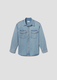 Classic denim shirt - featuring a slim fit, button closure, chest pockets and subtle shirttail hem. This fit is true to size. Looks Like: Vintage light indigo Feels Like: Zero stretch regenerative cotton MORE DETAILS Body Length: 29 1/2" Shoulder to Shoulder: 19 1/2" Sleeve Length: 26" Model is 5'10" and wearing a size Small Fabric: 100%Regenerative Cotton Care Instructions: Machine wash cold. Made in Turkey with imported materials A4030-3018-BRTL