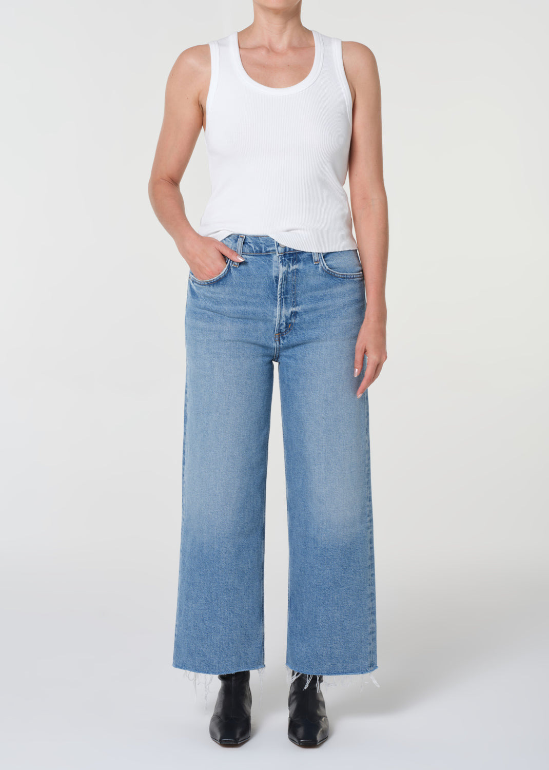 The Ren Jean is designed with a flattering high-rise waist, a relaxed fit through the hips, and finished with a wide leg silhouette. Now in a petite inseam of 25". Pair with a sleek tank or bodysuit. This fit is true to size. For a longer inseam, shop the Ren Jean Looks Like: Light to medium vintage indigo denim pant Feels Like: Comfort stretch, archive denim with a super soft hand for all day wearability MORE DETAILS Closure: Zipper Fly Rise: 12" Inseam: 25" Leg Opening: 19 1/2" Model is 5'3" and is wearing a Size 27 Fabric: 99% Regenerative Cotton, 1% Elastane Care Instructions: Machine wash cold inside out with like colors. Do not bleach. Tumble dry low. Made in Turkey with imported materials A214-1854-ORM