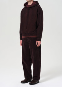An overdyed burgundy hooded sweatshirt crafted from heavyweight brushed fleece. This fit is true to size. Looks Like: Deep dark overdyed burgundy hooded sweatshirt Feels Like: Heavyweight brushed fleece with a warm, plush hand MORE DETAILS Body Length: 27 5/8" Shoulder to Shoulder: 25" Sleeve Length: 23" Model is 6'2" and wearing a size Medium Fabric: 100% Cotton Care Instructions: Machine wash cold. Made in USA with imported materials A1015B-1294-PHER