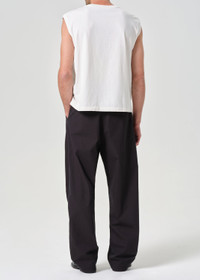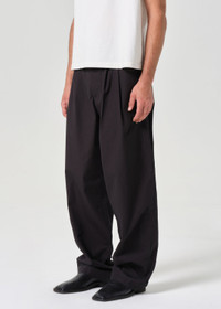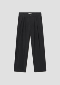 Relaxed straight leg with easy, pleated detailing and a subtle taper. This fit is true to size. Looks Like: Clean black Feels Like: Midweight poplin MORE DETAILS Closure: Zipper Fly Rise: 14 1/2" Inseam: 30 1/2" Leg Opening: 19 1/2" Model is 6'2" and is wearing a Size 32 Fabric: 100% Cotton Care Instructions: Machine wash cold inside out with like colors. Do not bleach. Tumble dry low. Made in USA with imported materials A684-1768-RSV