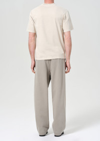 A washed-out grey trouser with front pleat detailing. True to size with a relaxed, tailored fit. This fit is true to size. Looks Like: Medium to light washed out grey trouser with front pleat detailing Feels Like: Non stretch, rigid twill MORE DETAILS Closure: Zipper Fly Rise: 14 3/4" Inseam: 30 1/2" Leg Opening: 19" Model is 6'2" and is wearing a Size 32 Fabric: 100% Regenerative Cotton Care Instructions: Machine wash cold inside out with like colors. Do not bleach. Tumble dry low. Made in USA with imported materials A669-1632-WKR