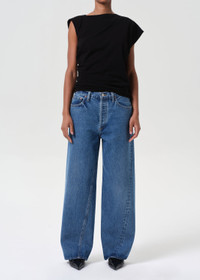 With a twisted outseam and easy, slouchy fit, the Twist Low Slung Baggy brings directional detail to a vintage-inspired silhouette. Crafted from rigid regenerative cotton denim in a bright medium indigo wash. This fit is true to size. Looks Like: Bright medium indigo denim pant with a twist seam detailing Feels Like: Rigid, non stretch cotton denim with a soft hand for all day wearability MORE DETAILS Closure: Button Fly Rise: 12 1/4" Inseam: 30 1/2" Leg Opening: 21" Model is 5'10" and is wearing a Size 27 Fabric: 100% Regenerative Cotton Care Instructions: Machine wash cold inside out with like colors. Do not bleach. Tumble dry low. Made in Turkey with imported materials A268-1371-MYH