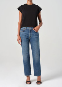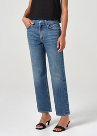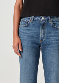 The Valen is a mid-rise vintage straight jean with an ankle-grazing inseam and a flattering square top block. Made from weightless regenerative cotton, these jeans offer a non-stretch fit that maintains structure while providing a soft, lived-in feel. Pair with a simple tee or oversized knit for a cool, effortless look that transitions seamlessly from day to night. This fit is true to size. Looks Like: Dark indigo denim with fading and light whiskering Feels Like: Weightless, non stretch denim cotton with a soft finish MORE DETAILS Closure: Zipper Fly Rise: 11" Inseam: 28 1/2" Leg Opening: 15" Model is 5'10" and is wearing a Size 27 Fabric: 100% Regenerative Cotton Care Instructions: Machine wash cold inside out with like colors. Do not bleach. Tumble dry low. Made in Turkey with imported materials A195-1601-ESNC