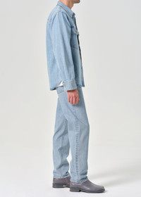 The Waldon features a neat mid-rise waist and a square top block that falls into a classic straight leg. Crafted from medium marbled indigo denim in rigid, non stretch regenerative cotton with a soft hand, it delivers authentic structure with all-day wearability. This fit is true to size. Looks Like: Light saturated indigo with finished hems Feels Like: Zero stretch regenerative cotton MORE DETAILS Closure: Zipper Fly Rise: 12" Inseam: 32" Leg Opening: 15 1/2" Model is 6'2" and is wearing a Size 32 Fabric: 100% Regenerative Cotton Care Instructions: Machine wash cold inside out with like colors. Do not bleach. Tumble dry low. Made in Turkey with imported materials A673-1206-CIRT