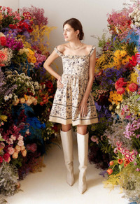 The Achiote Florero is a dreamy mini dress that flows effortlessly from sunny gatherings to moonlight soirees. Adorned with laser-cut ruffles along the neckline, this dress also features concealed zip fastening along the back and side pockets. - Evolution - Mini length - Laser-cut ruffles - Lining included - Concealed zip fastening along back COMPOSITION 100% Cotton SIZE & FIT Oriana is 178 cm / 5´10 and is wearing a size extra small.