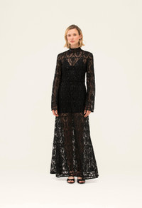 Our Arcilla Paramo sophisticated long-sleeve maxi dress is crafted from a fabric adorned with tone-on-tone sequin embroidery and finished with decorative buttons at the waist. A refined silhouette designed for evening moments, where texture and craftsmanship quietly shine. - Maxi dress - Long sleeve - Sequin embroidery - Decorative buttons at the waist - Special Fabric COMPOSITION 100% Polyester Lining: 100% Nylon SIZE & FIT Zhenya is 175 cm / 5’9’’ and is wearing a size extra small