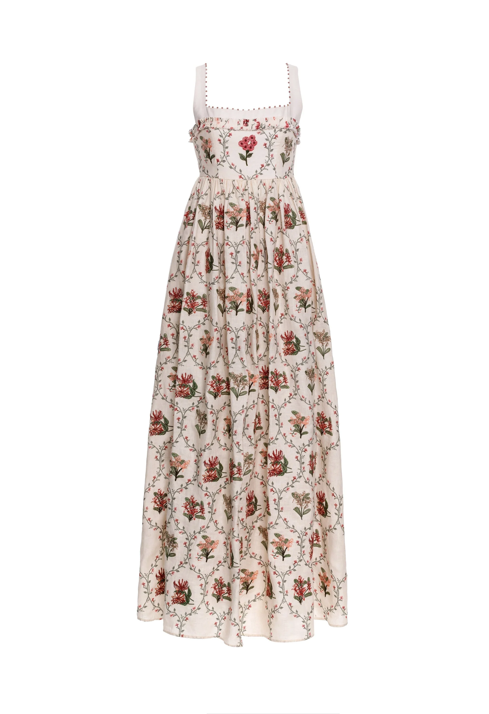With a sleek square neckline, lovely A-line silhouette, and concealed zip fastening along the back, the ´Barbara Orquidea´ midi dress in pure linen transitions wonderfully from sunny brunches to beachside soirees. - Fully embroidered - Best seller - Maxi length - Lining included - Concealed zip fastening along back COMPOSITION 100% Linen SIZE & FIT Isabella is 179 cm / 5´9 and is wearing a size extra small