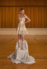 Our ’Boreal Cordillera’ slim-fit mini cotton dress featuring off-the-shoulder sleeves, a structured square neckline, and a softly gathered skirt. Crafted from 100% cotton and finished with a concealed zipper, this piece blends feminine tailoring with delicate volume. An effortless choice for day-to-evening dressing. - Square neckline - Concealed zip fastening at back - Slim fit - Gathers across the hips - Placement Print COMPOSITION 100% Cotton Lining: 100% Cotton SIZE & FIT Isabella is 179 cm / 5’10’’ and is wearing a size extra small