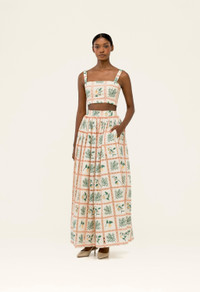 With a striking square neckline, our fully embroidered ’Cacao Uchuva’ crop top looks stunning with our ’Tangelo Uchuva’ Maxi Skirt. This garment features concealed zip fastening along the back. - Fully embroidered - Lining included - Square neckline - Concealed zip fastening - Cropped top - Special fabric COMPOSITION 100% Cotton Lining: 100% Cotton