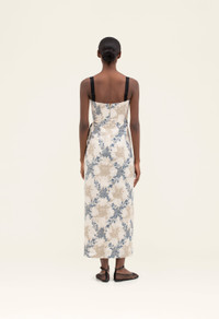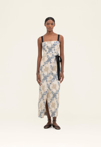 A recent addition, our ´Cinefila Bougainvillea´ maxi dress in cotton is the perfect night celebration attire, with a delicate decorative bow on the side, this piece becomes the epitome of sophistication. - Fully embroidered - Maxi length - Decorative bow - Lining included - Concealed zip fastening along back COMPOSITION 70% Cotton 30% Linen SIZE & FIT Isabella is 179 cm / 5´9 and is wearing a size extra small