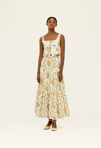 With a captivating blend of embroidered floral motifs, our ’Eslabon Cordillera’ top is an Agua favorite. With a beautiful square neckline and ruffle detailing, this piece adds a touch of feminity to every look. - Delicately placed embroidered embellishments - Best seller - Square neckline - Ruffled detailing COMPOSITION 100% Linen Lining: 100% Linen SIZE & FIT Isabella is 179 cm / 5’10’’ and is wearing a size extra small