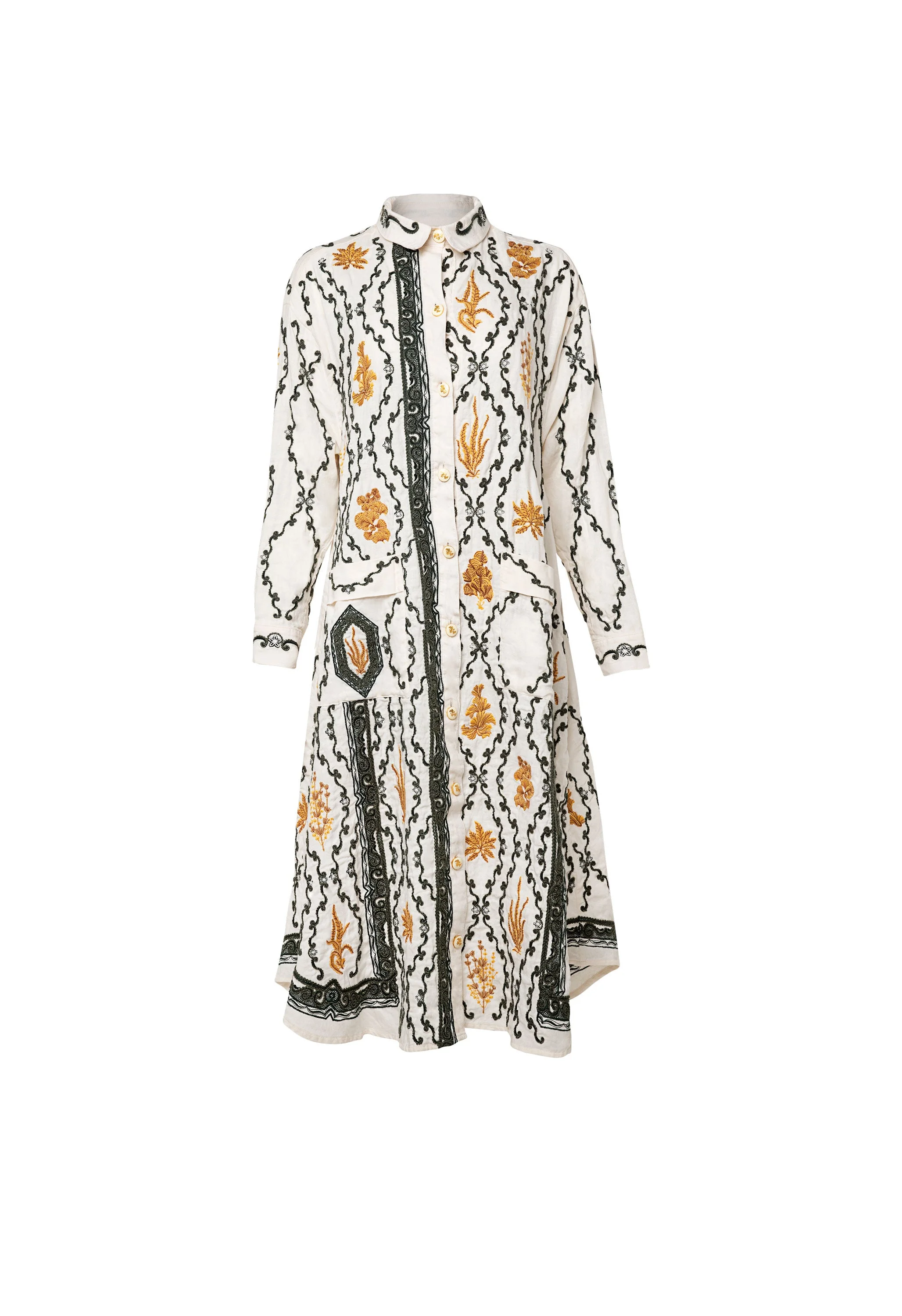 Our new 'Frida Calado' maxi shirt dress is as fabulous as it is flattering. Adorned with exquisite buttons and embroidered details all-over including the pockets, this airy linen piece can be styled as a striking cover-up or a striking day-to-night dress. COMPOSITION 100% Linen SIZE & FIT Model is 5´8 / 176 cm and is wearing a size Extra Small