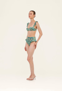 The Jengibre The Colony high-waisted bikini bottom is one of our bestselling pieces. Have fun pairing it with any of our bikini tops, or wear it with the Kiwi The Colony top for an impeccable look. This piece is made using recycled polyester. - Best seller - Hand embroidered - High waisted - Lining included - UPF 50 sun protection - Made using recycled polyester - Placement Print - Handmade Embroidery COMPOSITION 81% Recycled Polyester 19% Elastane