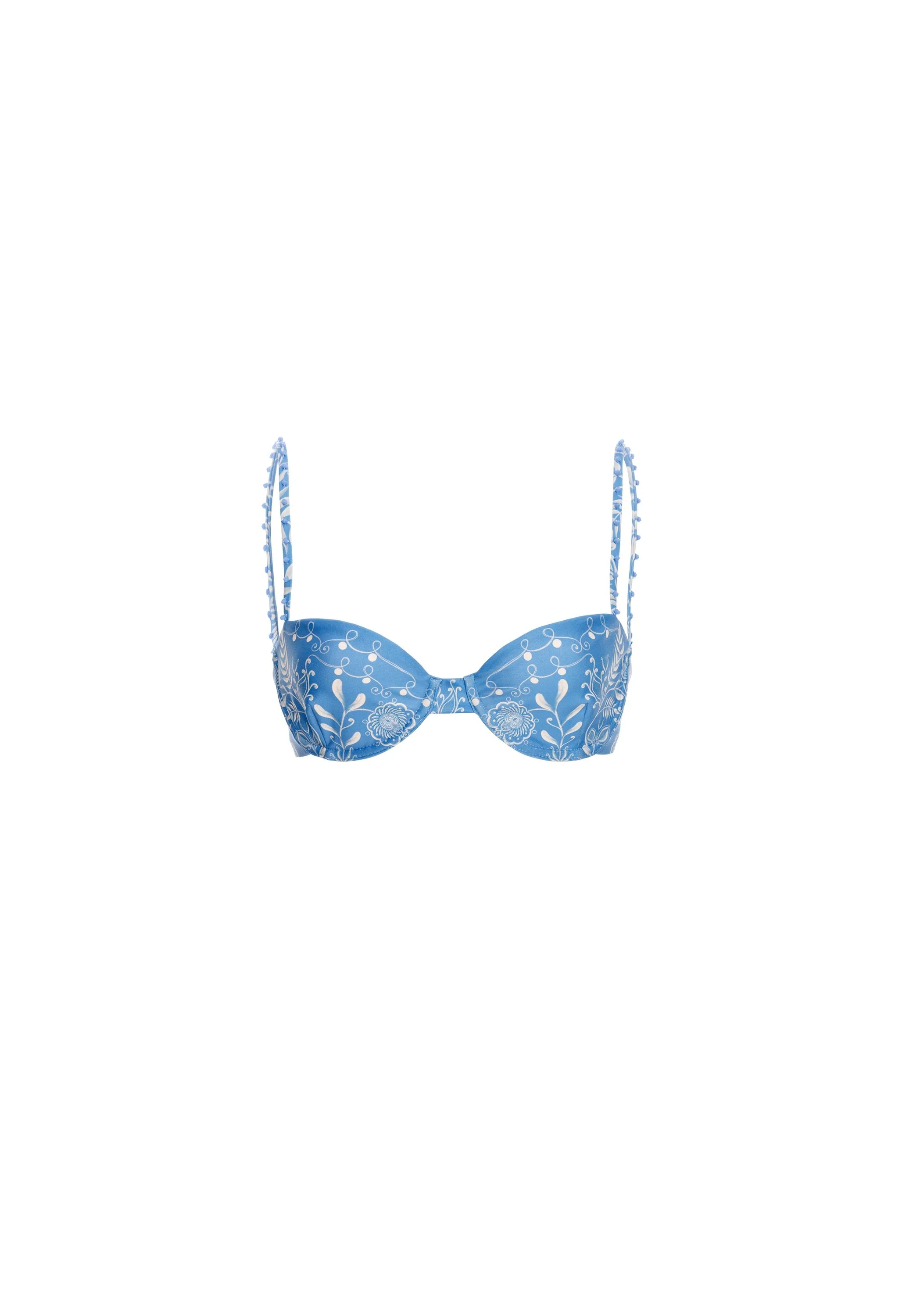 Our best-selling ´Magdalena Floritura´ bikini top features underwire support for a seamless fit. Wear it with our ´Magenta Floritura´ bikini bottom for a fabulous ensemble. This piece is made using recycled polyester. Our swimwear garments offer up to UPF 50 sun protection. - Underwire support - Lining included - Made from recycled polyester - UPF 50+ sun protection COMPOSITION 81% Recycled Polyester 19% Lycra SIZE & FIT Jessica is 177 cm / 5´8 and is wearing a size extra small