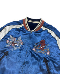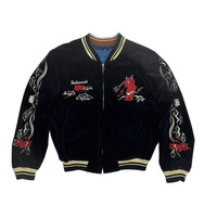 NO: 188 ✅Yes, this item is still available 🌍Yes, I ship to your country ❤️Easy to negotiate😘 👍🏻Accept Binding Offer‼️ 👌🏻Free to ask before buy Brand:Vintage Double Sided Tedman Company Sukajan embrodery bird Evil native Bomber Jacket Size : (40) Please refer to Manual measurement 🎖Measurement: (in inches) 🎖 Armpit : 21.5’ inches Length : 25.0’ inches Shoulder : 23.0’ inches Hem : 15.0’ inches Sleeve Length : 30.0’ inches Material/Fabric: 100% Saten/Velvet (Refer to the tag reads) Stitching: Condition: 🎖Very good condition. Minor Flaws (sign of use)‼️ 🎖 Nice Design and can be wear in both sided🔥🔥🔥🔥 FEEL FREE TO ASK AND OFFER YOUR REASONABLE PRICE. SURELY, I WILL CONSIDER FOR IT. BUY WITH CONFIDENT 1. Shipping is via FEDEX/DHL Express/International Registered Pax with good Tracking record. Item will be sent within 2-5 business day after payment. Please inform me if you want to declare a low Value to avoid Custom Tax. 2. ATTENTION- Please pay close attention to the measurements provided. Do not rely on tag size as pre-worn may have been stretch or shrunk. The best way to ensure the correct size is the measure of a quiet similar item that know fits you well. Please don’t expect this item to be new or pristine condition unless it stated. I try give as much DETAIL as can. 3.Kindly leave/Drop your phone number once you had done the payment for Shipping record. 4. Please enlarge the image to see more clearer picture about the item and free to ask for confirmation before you buy. If you have any problem, please do not give -ve feedback. Inbox me and we will solve it. 🙏🏻 #I accept paypal only🎖 ***Please take note that all sales are FINAL. No return, exchange, or refunds.