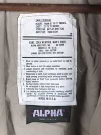 Hello there!! Thank you for watching my item. Please read this description and refer photo for further information about this item.Don’t hesitate to ask me if u have any question about this item ———————————————————- Item : Alpha Style : field jacket Colour : beige Condition : good as gently used item Made in USA *Please refer photos for more details and manual measurement on flat garment *Please double confirm your size before purchase This is used item,please do not assume it to be like new or in pristine condition.If there are having imperfection i will mention it in description and photo. ——| Payment,Shipping and handling|—— •payment method via PayPal only. •don’t worry about customs tax or fees because i will declare value of the item lower than original price •Shipping worldwide with registered mail comes with tracked number (std. shipping) Take about 21 onwards working days depend on your location •Express shipping can be handle.(if requested) an extra money should be added *Any price offer are welcomed but low baller stay away. *A discount always there when you purchase two, three or more item Notes:please leave your contact number after purchase for shipping process. Thanks for reading, have a nice days and happy grailed