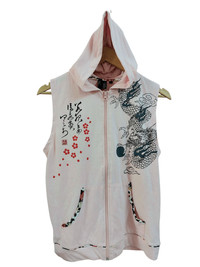 Designer - Sleeveless Hoodies Punk Sukajan Sakura Dragon Printed