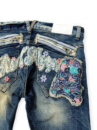 🔥Red Pepper Jeans Flare Embroidery Florish Skulls Condition : Used ( 8.5 / 10 ) Material : Cotton Colour :Blue .......................................................................... Tag: Red Peppers > Size: On tag (28) / Measure: 31 Manual Measurements / Laid Flat ( inches ) Waist : ~16 Length : Outseam ~ 39 Inseam ~ 30 ( Please Check Actual Size And Image Carefully. All Sales Are Final. No Return, No Refund ) * The Colour Of The Item May Slightly Vary, Due To Quality Of Camera And Light Effect. .......................................................................... > ✈️ WORLDWIDE EXPRESS SHIPPING ✈️ DHL / FedEx 5-10 Days Worldwide (From Asia) ❗ ( Please Sent Me Your Contact Number After Making A Purchase For Shipping Purpose - To Written On Parcel ) Thank You ~ Akumi Store ~