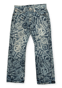 Co & Lu All Over Printed Smiley Inspired by Kapital Condition : Used ( 8.5 / 10 ) Material : Cotton Colour : Blue/White .......................................................................... Tag: Co & Lu > Size: 31 Manual Measurements / Laid Flat ( inches ) Waist : ~16 Length : Outseam ~ 39.5 Inseam ~ 29.5 ( Please Check Actual Size And Image Carefully. All Sales Are Final. No Return, No Refund ) * The Colour Of The Item May Slightly Vary, Due To Quality Of Camera And Light Effect. .......................................................................... > ✈️ WORLDWIDE EXPRESS SHIPPING ✈️ DHL / FedEx 5-10 Days Worldwide (From Asia) ❗ ( Please Sent Me Your Contact Number After Making A Purchase For Shipping Purpose - To Written On Parcel ) Thank You.