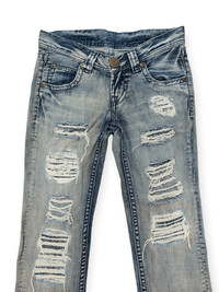 Murua Low Rise Thrashed Denim Jeans Condition : Used ( 8.5 / 10 ) Material : Cotton Colour : Dark Blue Faded .......................................................................... Tag: Murua > Size Measure: 28 Manual Measurements / Laid Flat ( inches ) Waist : ~14.5 Length : Outseam ~ 41.5 Inseam ~ 33 ( Please Check Actual Size And Image Carefully. All Sales Are Final. No Return, No Refund ) * The Colour Of The Item May Slightly Vary, Due To Quality Of Camera And Light Effect. .......................................................................... > ✈️ WORLDWIDE EXPRESS SHIPPING ✈️ DHL / FedEx 5-10 Days Worldwide (From Asia) ❗ ( Please Sent Me Your Contact Number After Making A Purchase For Shipping Purpose - To Written On Parcel ) Thank You ~ Akumi Store ~