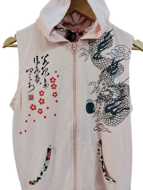 If Six Was Nine - Sleeveless Hoodies Punk Sukajan Sakura Dragon Printed