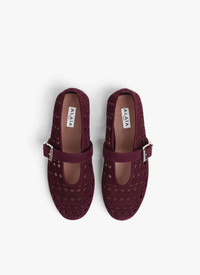 Signature Alaia ballet flats inspired by classical Japanese shoes Buckle strap on top, round toes, rubber sole Suede goatskin leather perforated with the iconic "Vienne" motif Made in italy DETAILS MAIN MATERIAL : 100% GOATSKIN LEATHER MAIN LINING : 100% LAMBSKIN LEATHER SOLE : 100% RUBBER BUCKLE : 100% ZAMAK PRODUCT REFERENCE : AA3A029C0H53-325